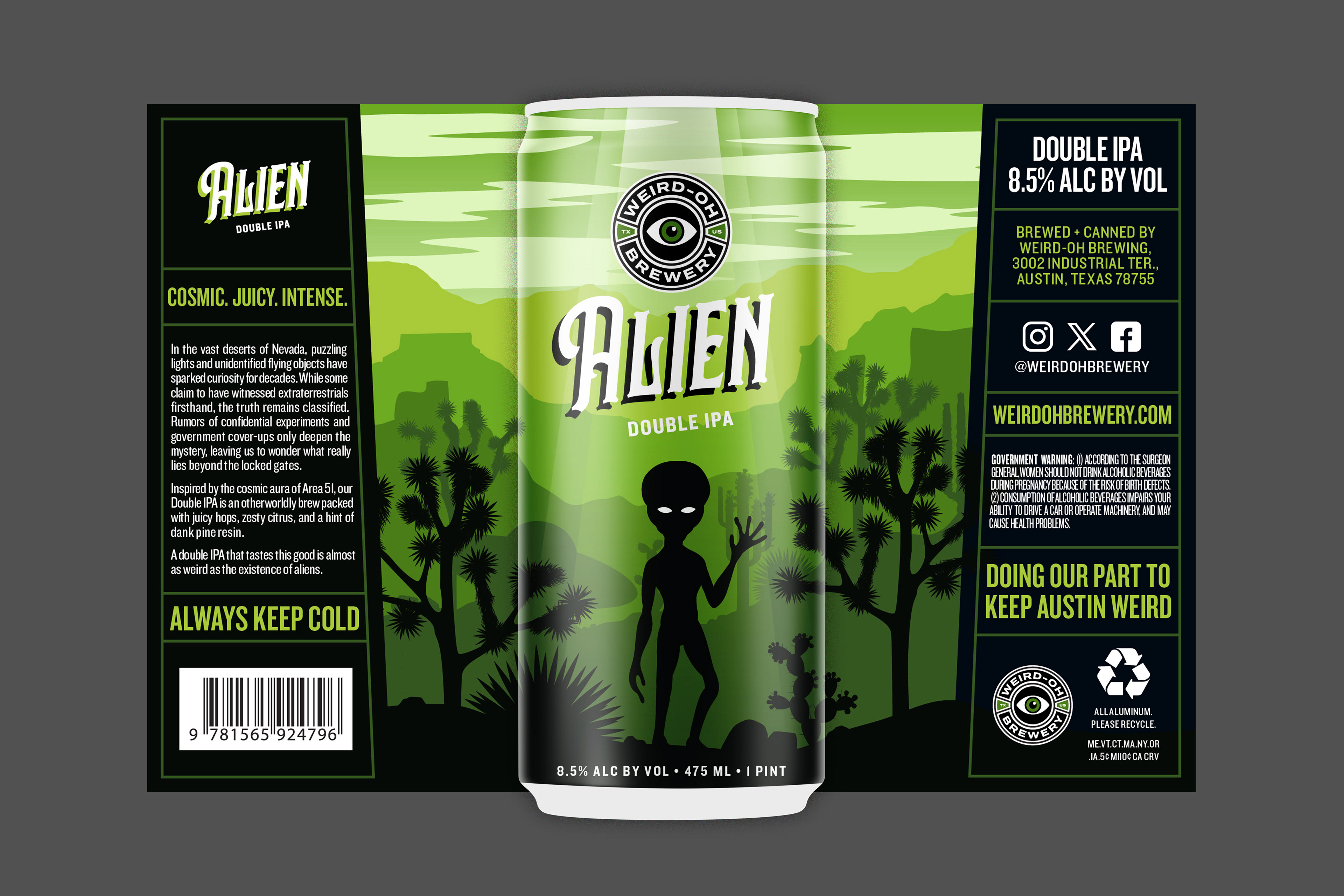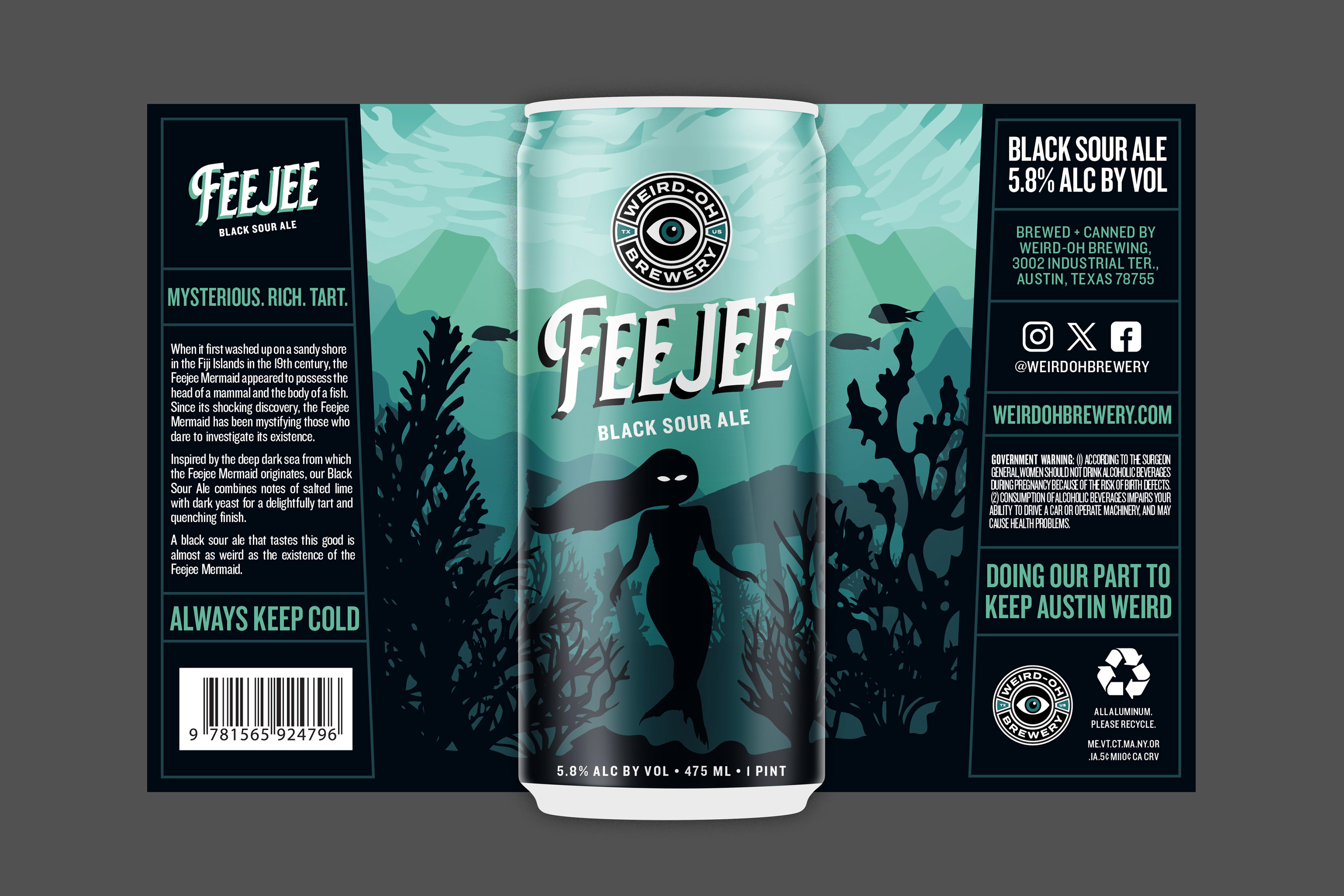 Weird-Oh Brewery, based in Austin, Texas, embodies the city’s “Keep Austin Weird” spirit with eccentric branding. Its flagship India Pale Ale, Black Sour Ale, and Double IPA feature bold, vibrant packaging inspired by the mysterious creatures featured in Austin’s famous Museum of the Weird. Blending craftsmanship with curiosity, the design celebrates local folklore and appeals to beer lovers who appreciate exceptional brews with a touch of the extraordinary.
